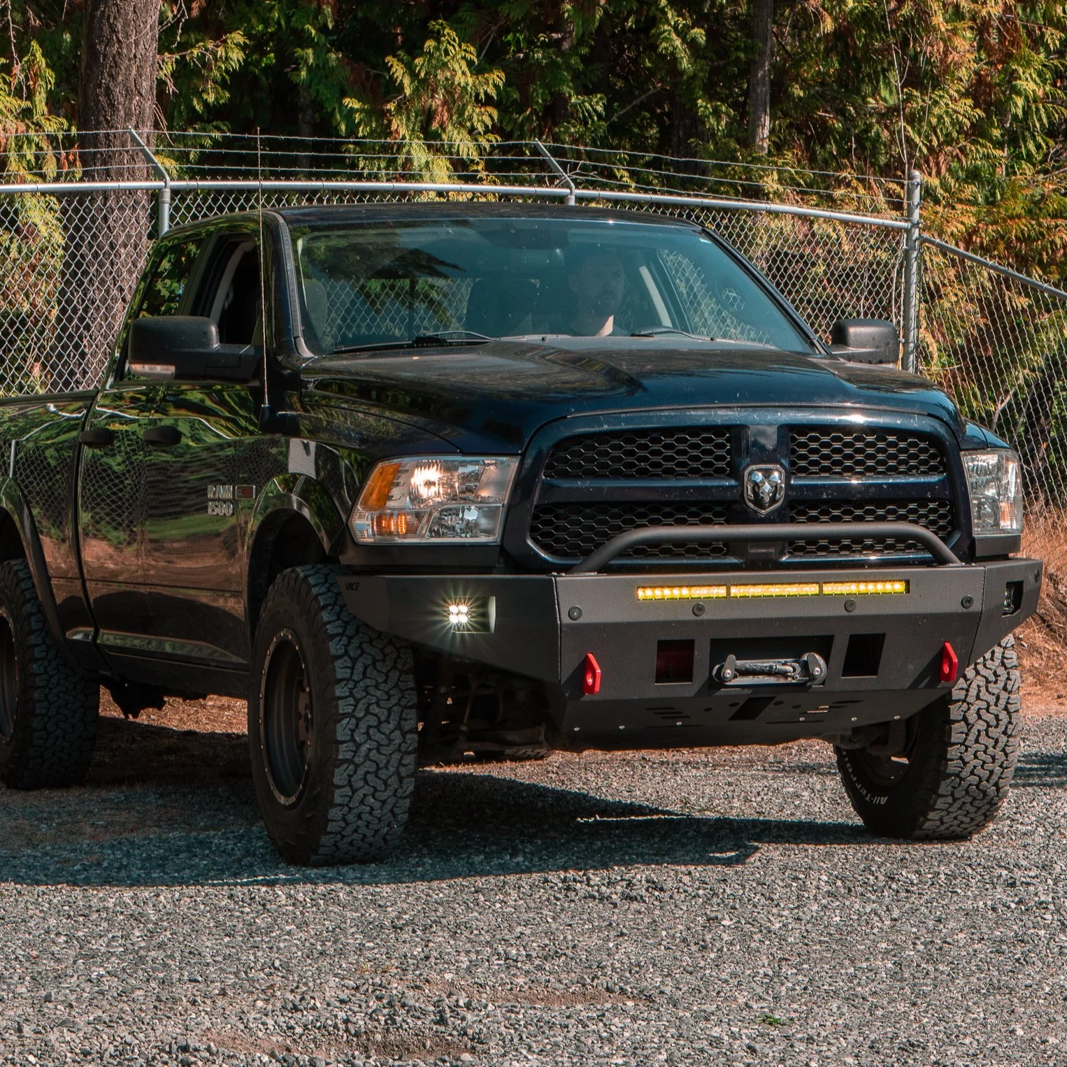 All our bumpers and accessories are finished in a Satin Textured Black Powder-coat finish. This is the same finish that comes factory with the RAM Rebel. It has a slight texture and shine.